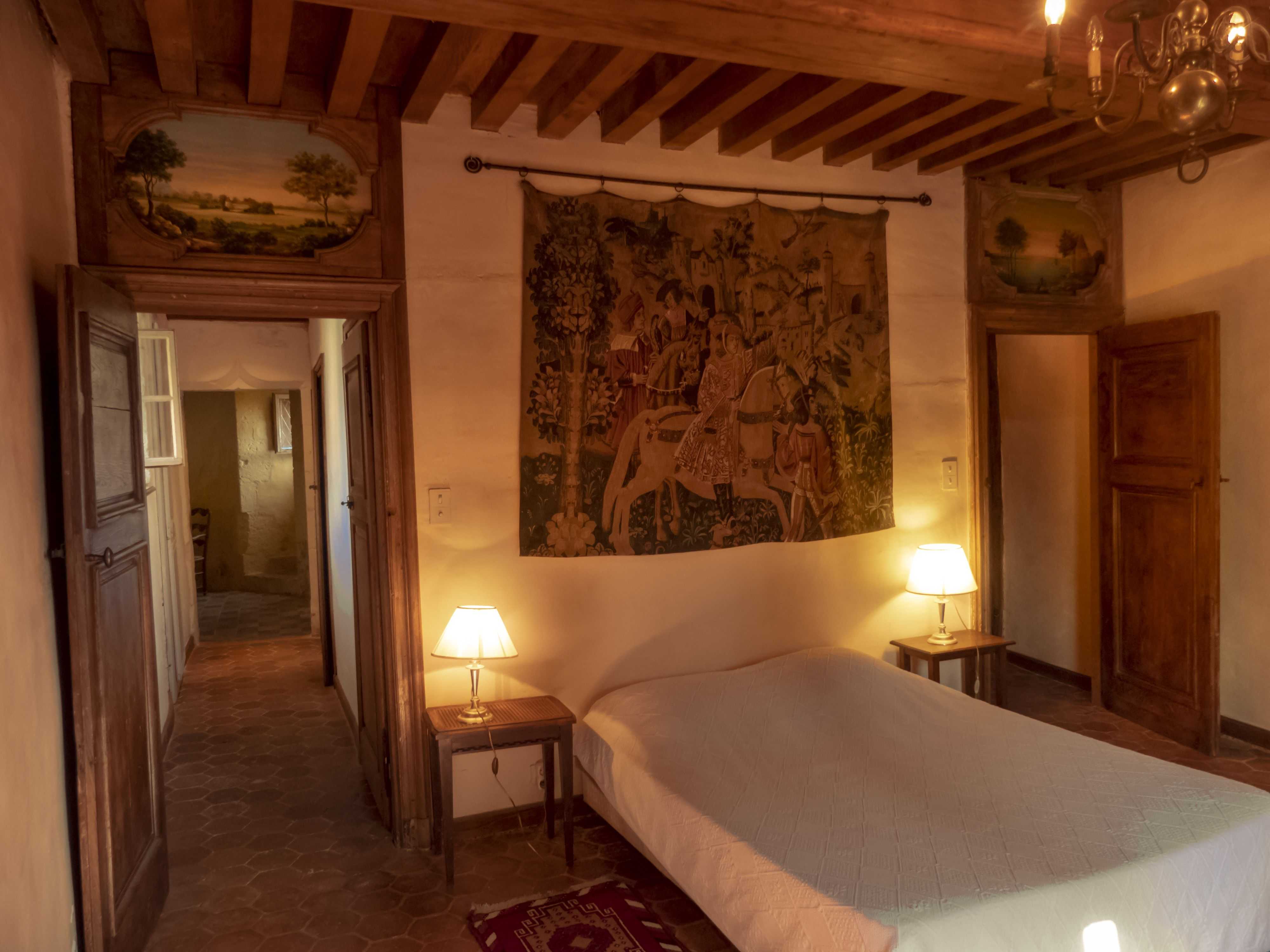 Au premier étage du pont-levis, une suite de deux chambres dont l'une est dans une tour.